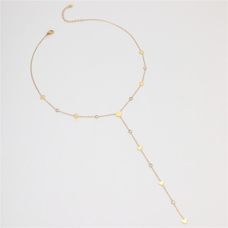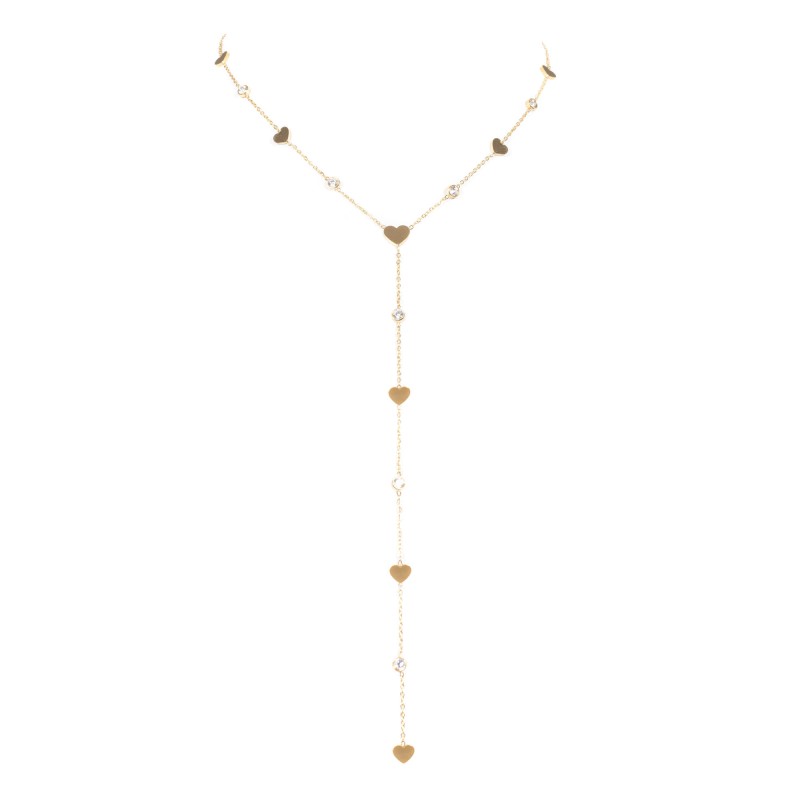 Collier Lunaé doré fin en Y avec coeurs et strass, un bijou délicat et féminin pour sublimer votre cou avec élégance.