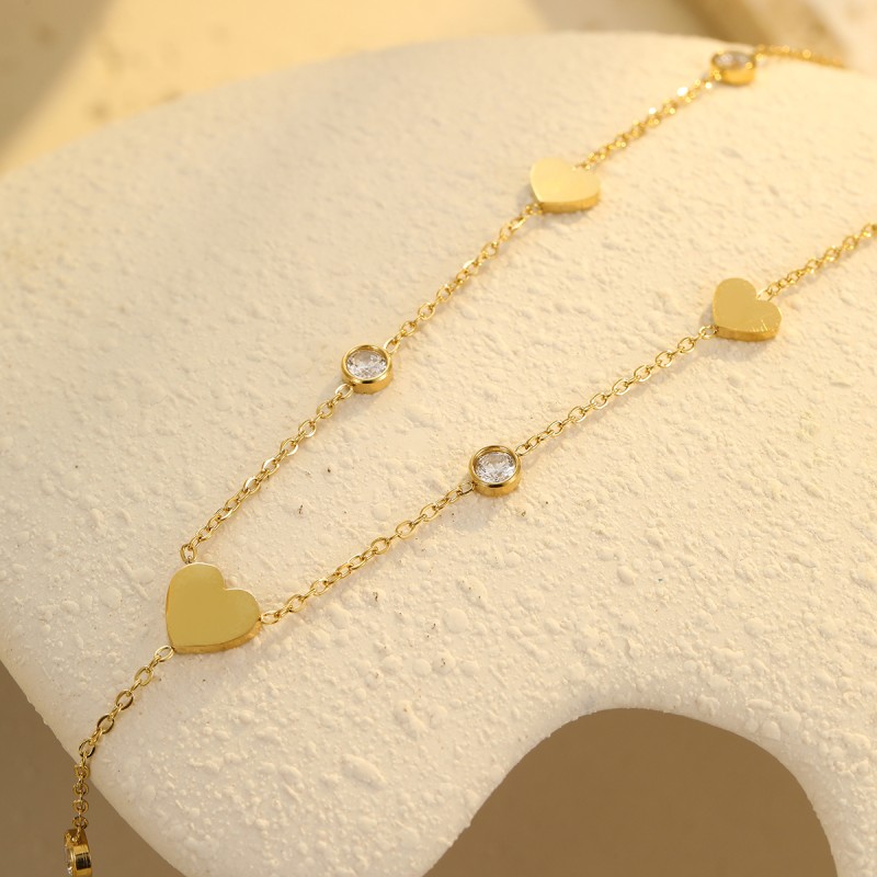 Son design asymétrique en Y joue sur l'alternance de petits coeurs dorés et de strass étincelants, créant un effet goutte irrésistible.