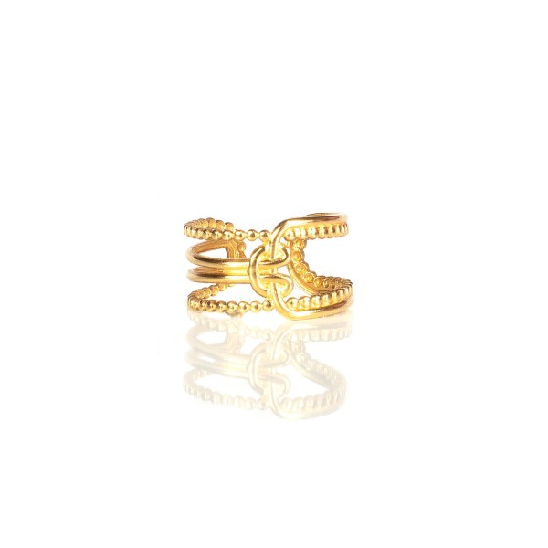 Bague Alix dorée en acier inoxydable ajustable. Design entrelacé élégant, résiste à l’eau, parfaite pour un look chic au quotidien.