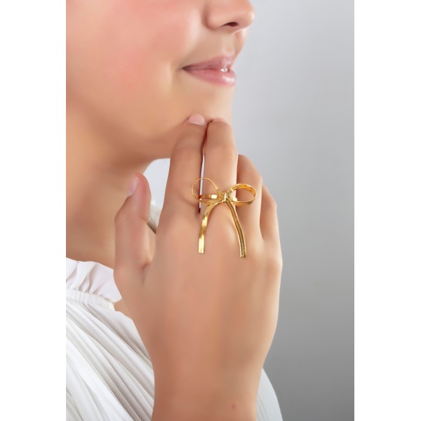 Bague Alya dorée en acier inoxydable ajustable avec nœud élégant. Un bijou féminin, léger et résistant à l’eau, parfait pour un look raffiné
