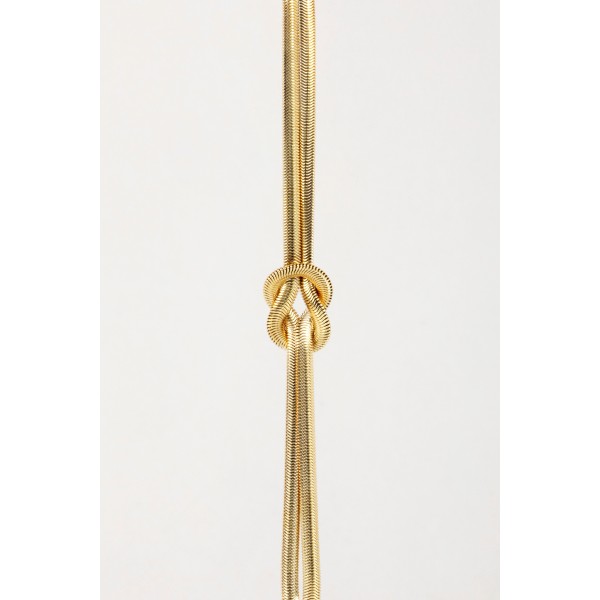 Bracelet Elly doré en acier inoxydable avec noeud central, un bijou moderne et symbolique à porter au quotidien.