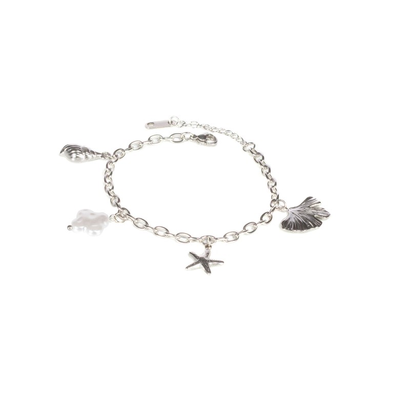 Bracelet Naïa argenté en acier inoxydable, avec pendentifs marins, parfait pour un look estival tendance et résistant à l'eau.