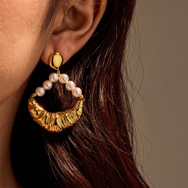 L'équilibre parfait entre caractère et douceur. Ces créoles bohèmes chic associent un demi-cercle doré au design "croissant" texturé à une délicate rangée de perles blanches.